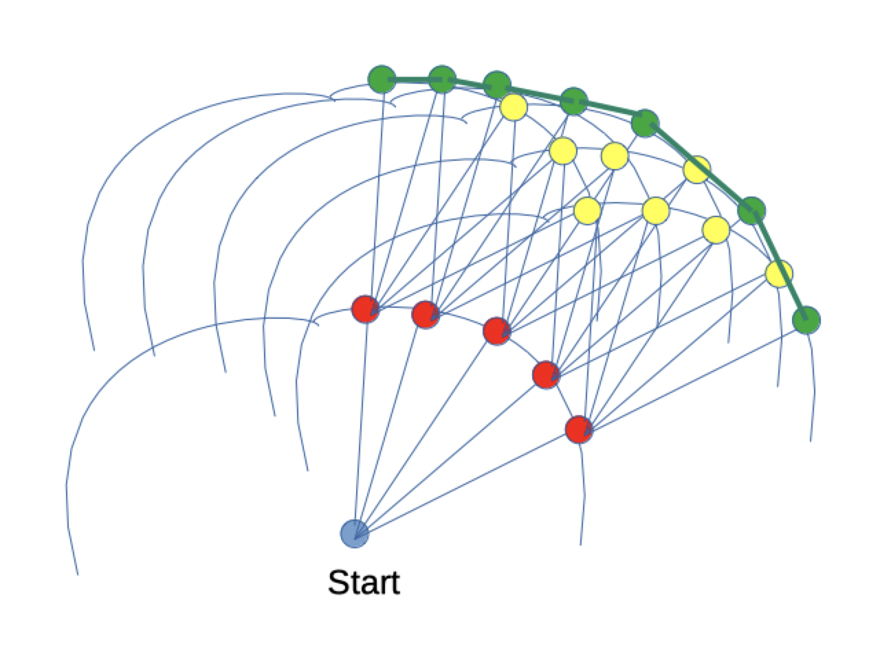 By connecting successive isochrones, a graph of possible positions is obtained.