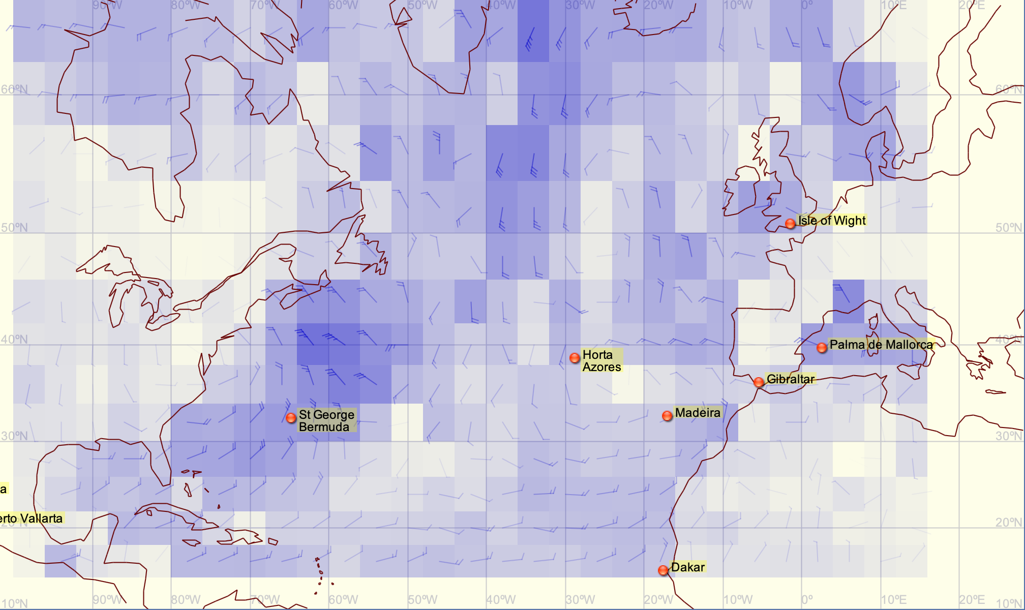When cruising, you might also want to avoid areas of bad weather, or conversely, take advantage of specific weather conditions.