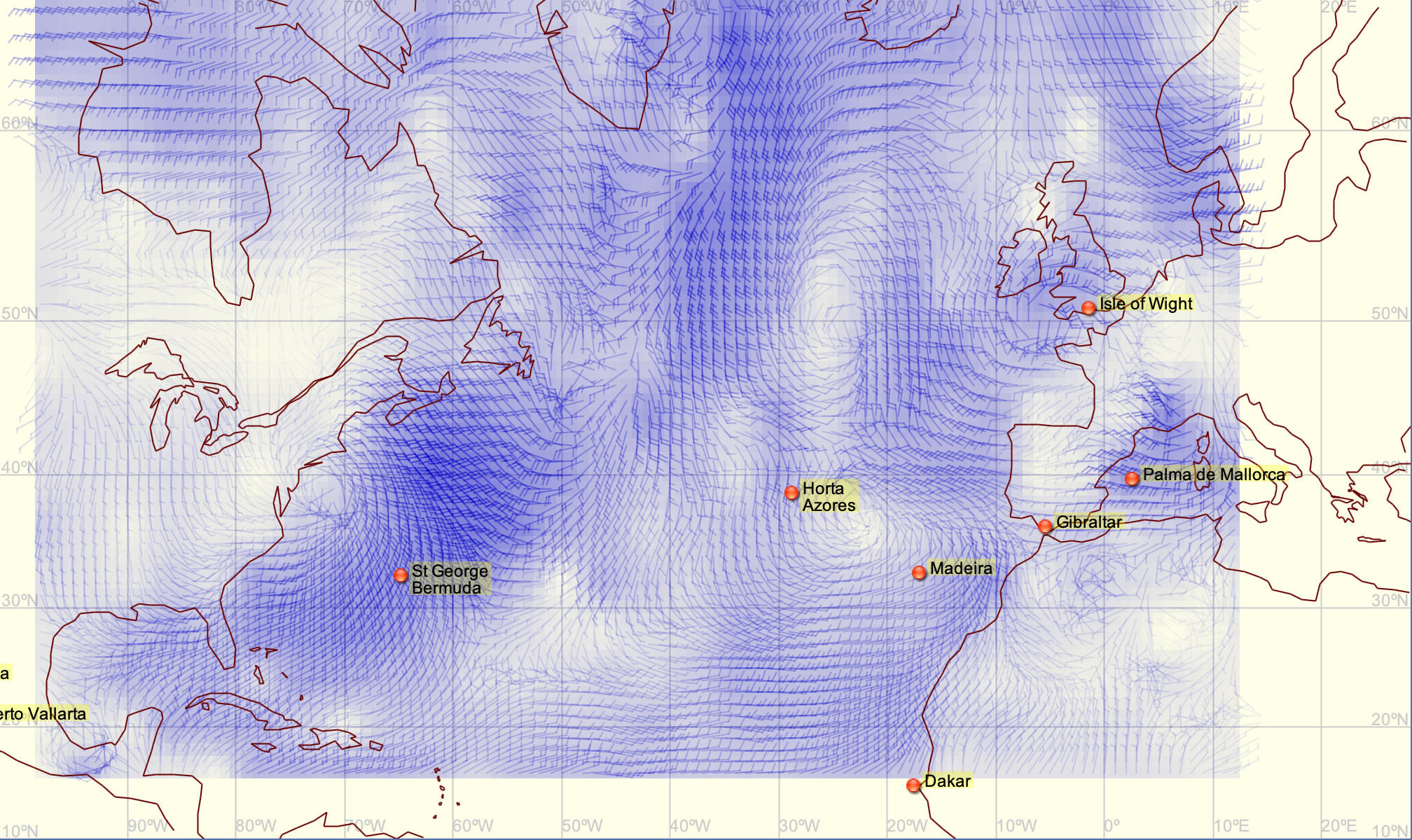 En croisière, on peut aussi vouloir éviter les zones de mauvais temps, ou au contraire profiter de certaines conditions météorologiques particulières.