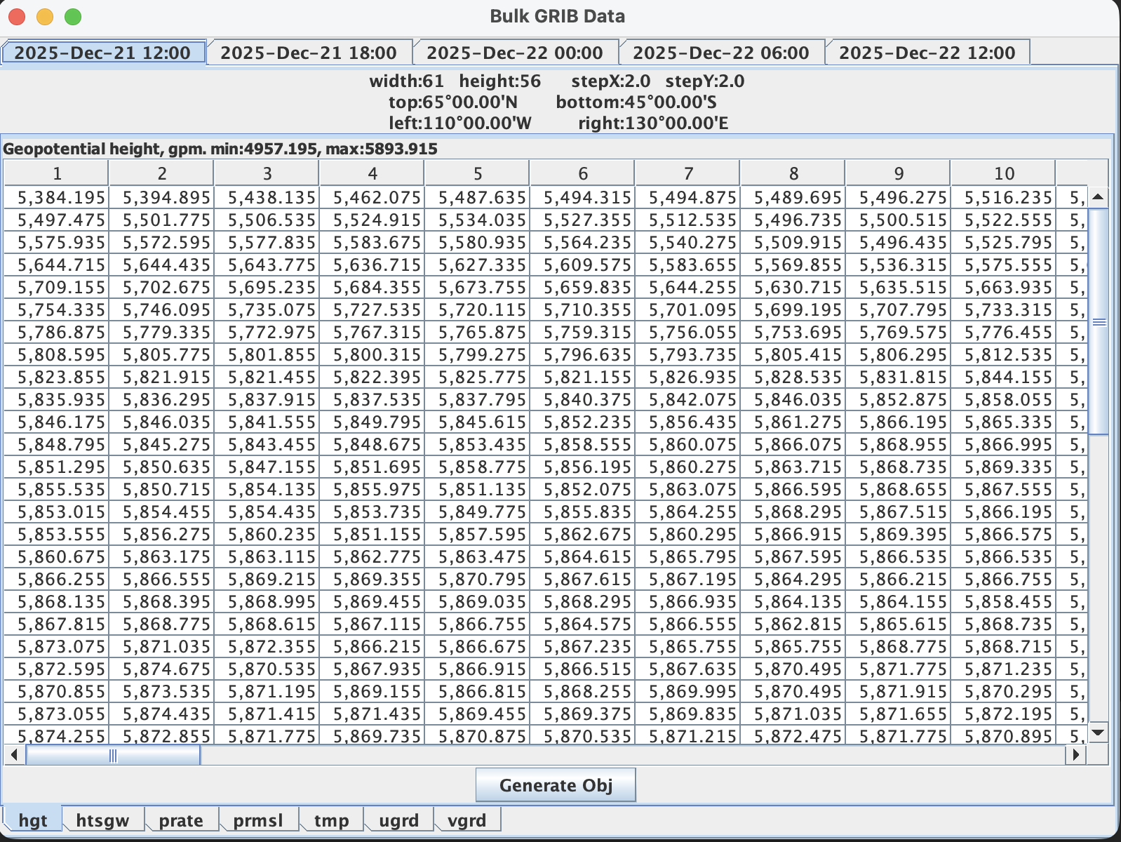 It can also sometimes be useful to display the GRIB data in 3D.