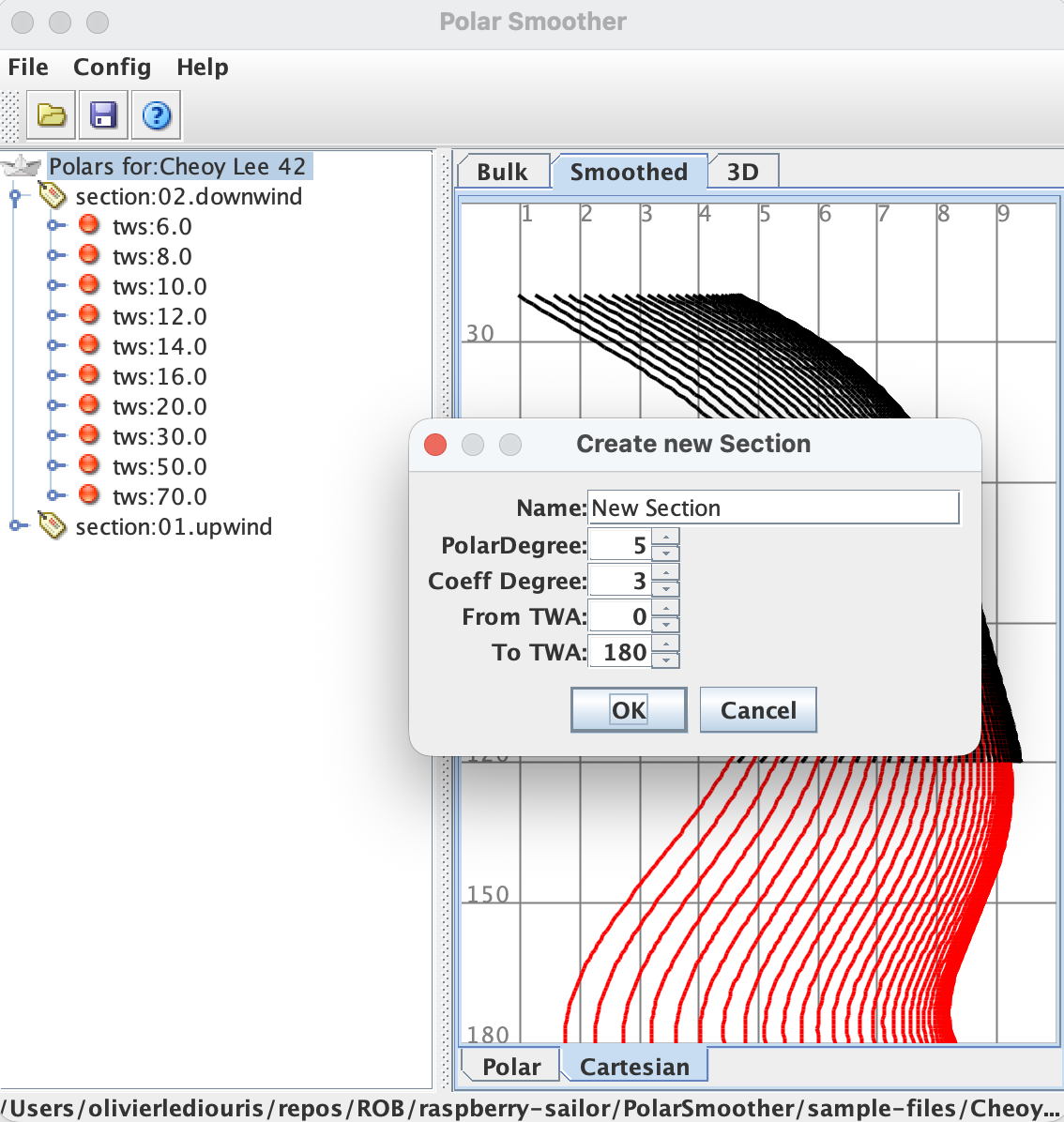 The coefficients above are then used to generate the polars that will be used when calculating a route: