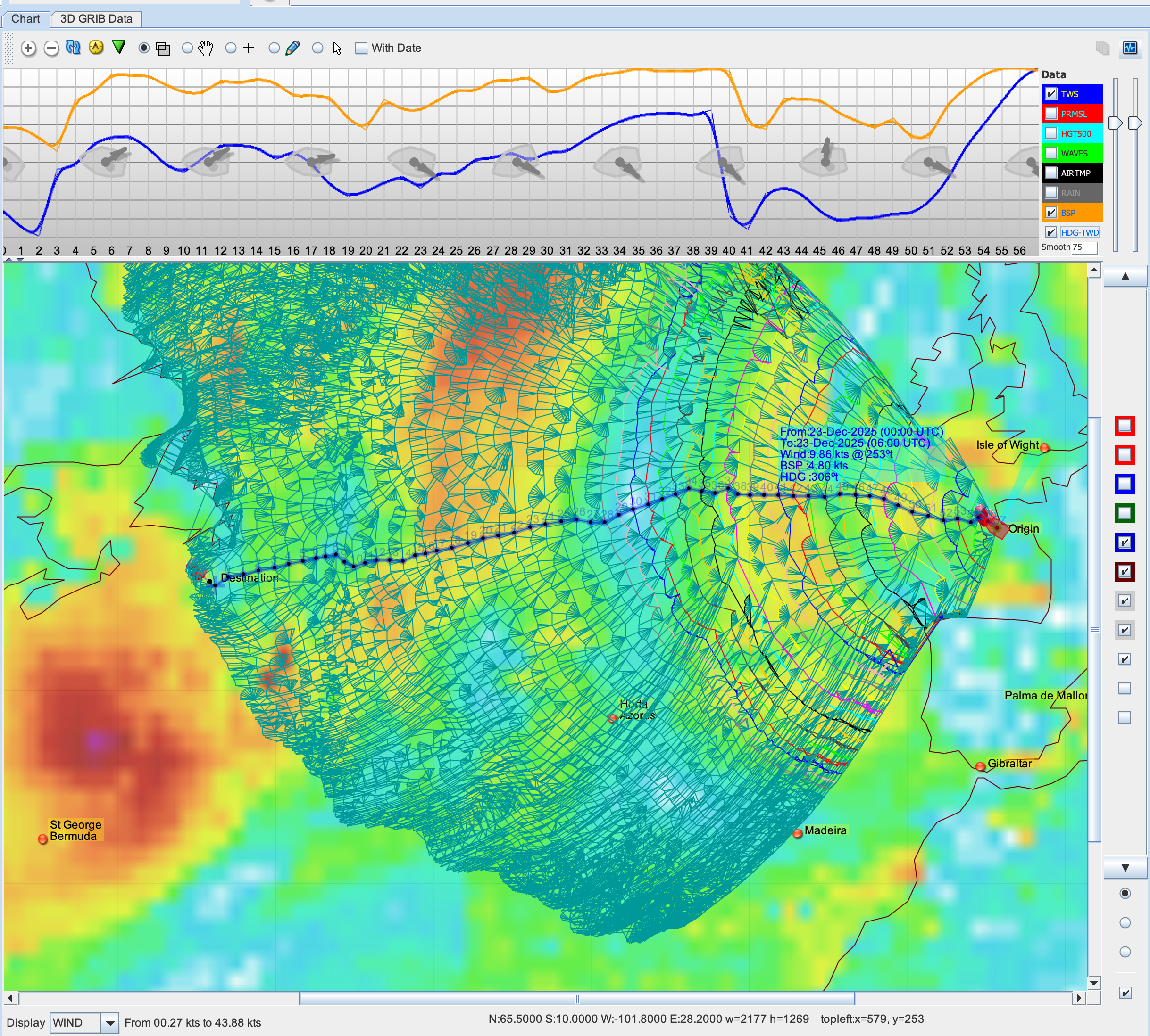 This calculation is performed using GRIB data for each point of the first isochone (where the conditions are now different).